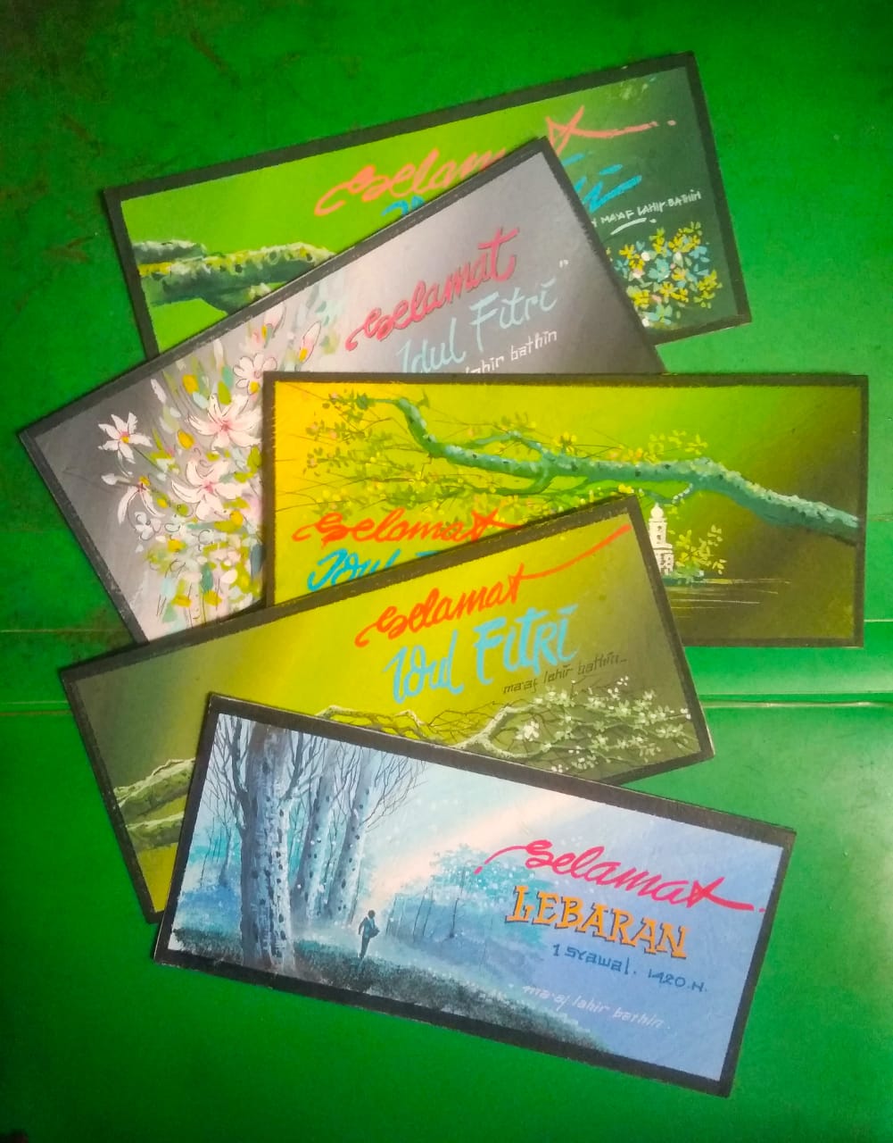 Kartu lebaran dari kertas tentu berbeda dengan poster atau ucapan yang dikirim lewat media sosial. Di sana ada kebersamaan, keguyuban, dan kerukunan. Saling berbagi cerita, pengalaman, dan teknik kesenirupaan.